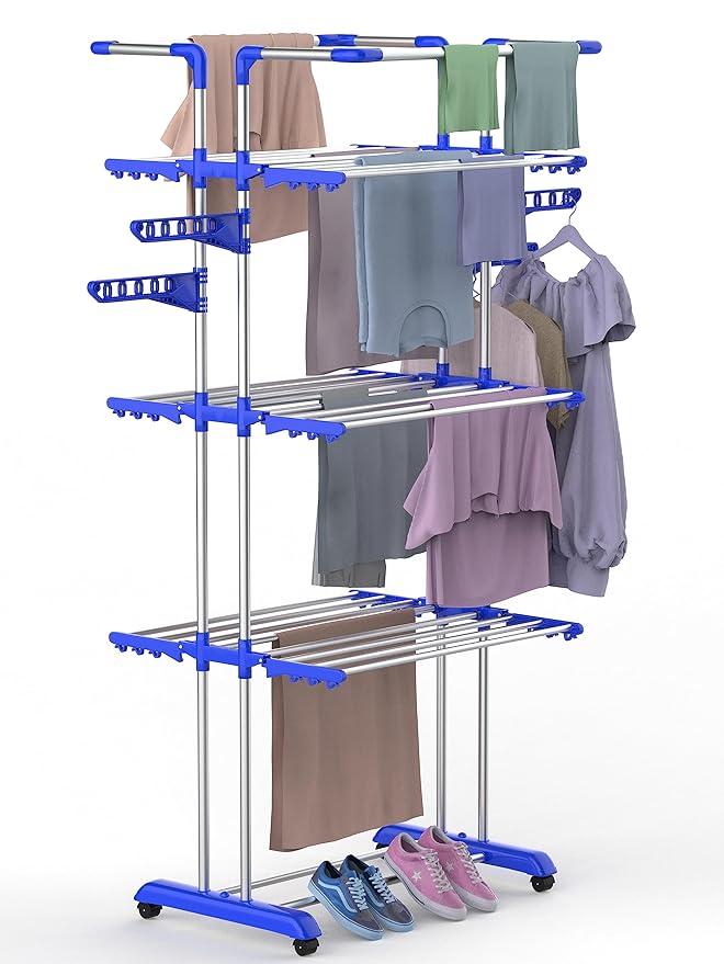 EXCEPTIONAL & UNIQUE FEATURES: " Keeping You In Mind" THIS CLOTH DRYING STAND HAS 100% RUST FREE STAINLESS STEEL RODS WITH GUARANTEED LONG TERM VALUE WHEN COMPARED TO WHITE POWDER COATED MILD STEEL RODS. Stainless steel rods are also germ & corrosion resistant which is more preferable when you have kids and pets at home. It also has high quality ABS plastic which will withstand heavy use and adverse environmental conditions and have great strength & resistant to chemical corrosion.
