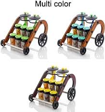 Description: - Spice Jar Stand and holder for supporting jars, bottles etc. including all kitchen purposes. Its design is very ease going and very handy in order to use it clearly without any problem or facing any disadvantage. It is made under the consideration of users concern, which makes this product safe while using it in kitchen. You can use it everywhere just because of its small size and ongoing mobility and take it to everyplace, where you want to use it for your needy purposes. This Rajwadi spice jar stand and holder system is very handy and light weighted so it basically doesnt need any extra hand to control or manage it and thats is why, this furthermore makes it a worthy material. General: - Material: - Wooden and steel Type: - 2677 Rajwadi Spice Jar Stand and holder for supporting jars, bottles etc. including all kitchen purposes. Specifications: - Safe to use and handle the stand Light weighted and easy to carry Simple to use it anywhere Smooth mechanism Can place every kind of jar stuff easily Dimensions: - Volu. Weight (Gm) :- 3055 Product Weight (Gm) :- 1050 Ship Weight (Gm) :- 3055 Length (Cm) :- 29 Breadth (Cm) :- 25 Height (Cm) :- 21